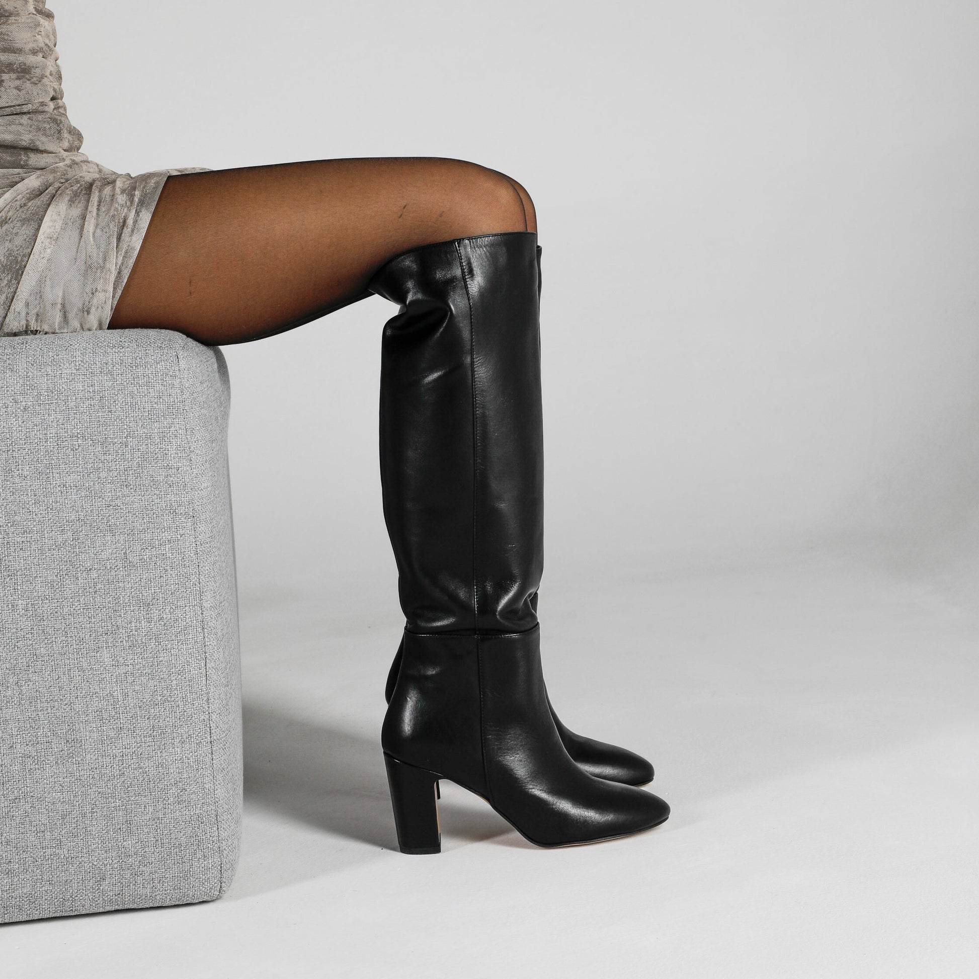 Il Stivale Aurora in pelle nera è la scelta ideale per chi cerca eleganza e praticità in un unico modello. Questo stivale tubolare, realizzato in pelle liscia di alta qualità, avvolge la gamba senza cuciture visibili, offrendo un look pulito e minimalista. Il tacco largo da 70 mm garantisce una stabilità ottimale, perfetta per chi desidera una calzatura confortevole e slanciata allo stesso tempo. Il design tubolare, privo di zip, facilita la calzata mantenendo una silhouette essenziale e raffinata, adatta a ogni occasione, sia casual che formale.